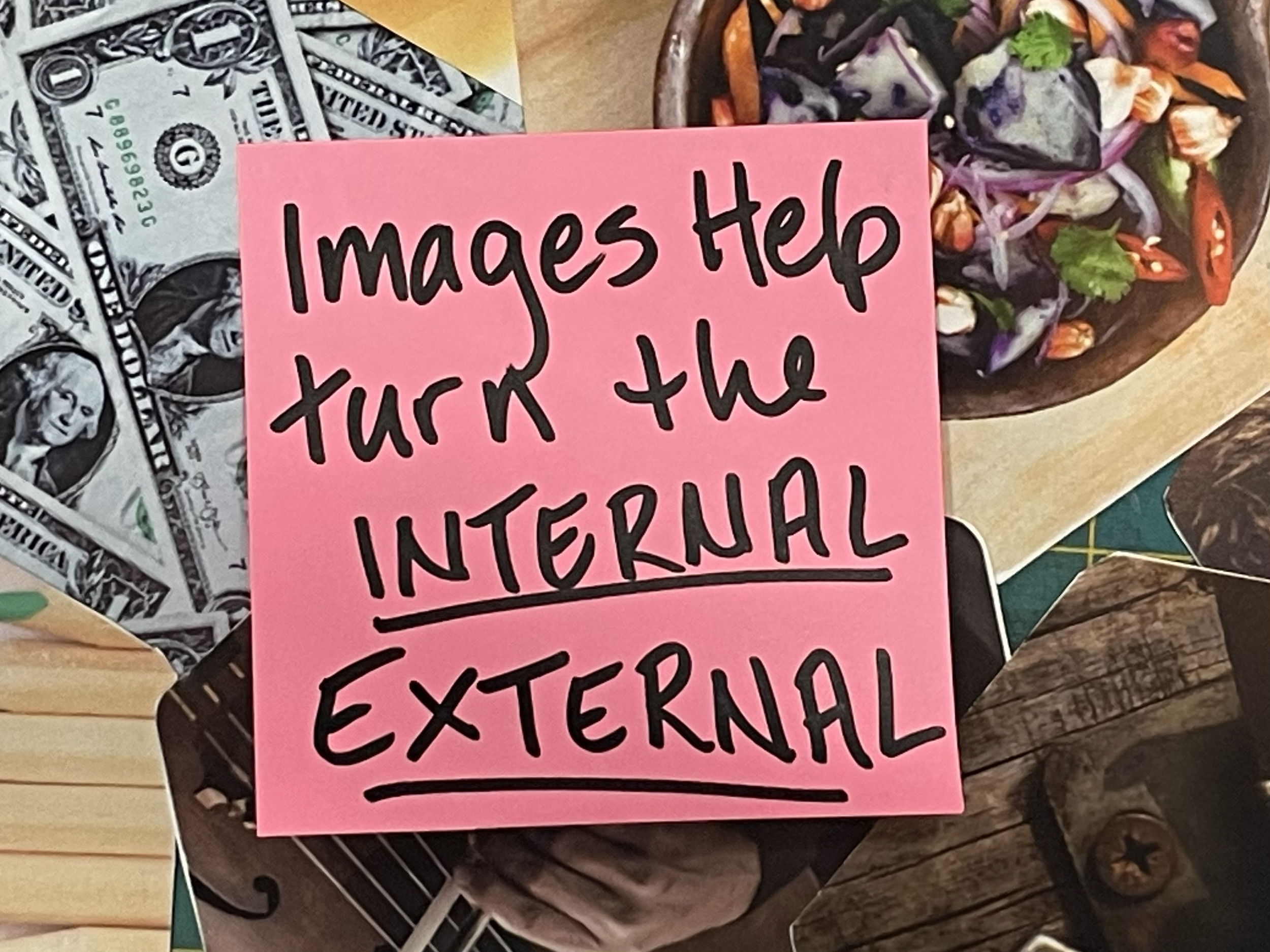 I’ve used OuiSi cards, and you could even just use a collection of images cut out from a magazine and glued to an index card. The important thing is that it’s a broad collection of images that give people the opportunity to interpret them widely.